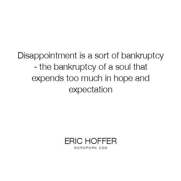Disappointment is a sort of bankruptcy - the bankruptcy of a soul that expends too much in hope and expectation