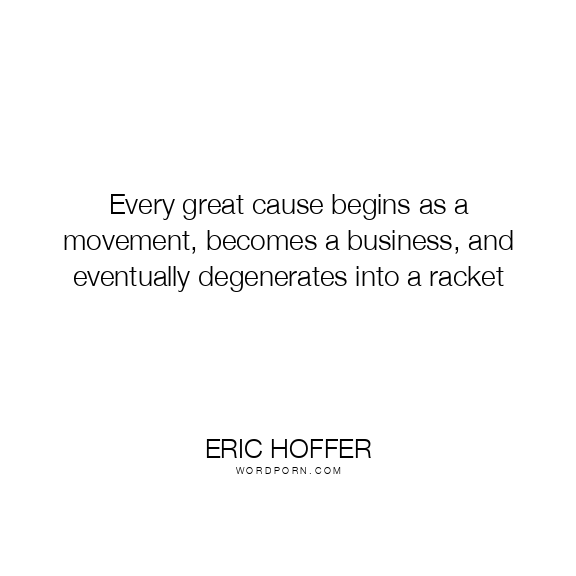 Every great cause begins as a movement, becomes a business, and eventually degenerates into a racket