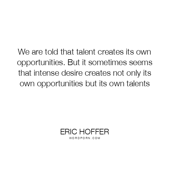 We are told that talent creates its own opportunities. But it sometimes seems that intense desire creates not only its own opportunities but its own talents