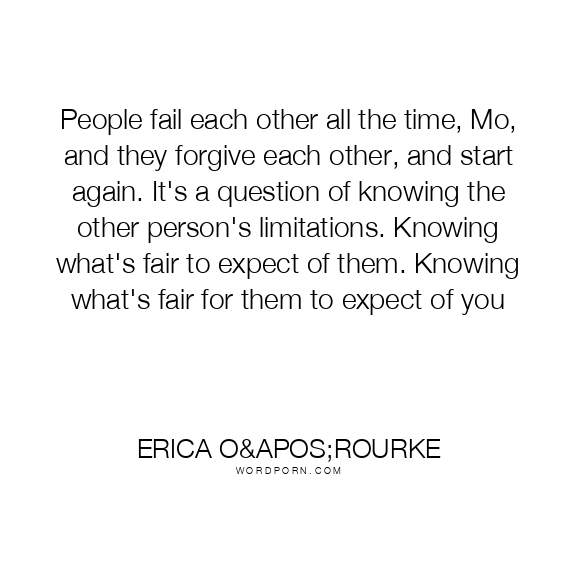 People fail each other all the time, Mo, and they forgive each other, and start again. It's a question of knowing the other person's limitations. Knowing what's fair to expect of them. Knowing what's fair for them to expect of you