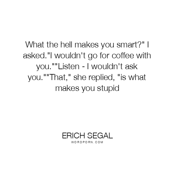 What the hell makes you smart?" I asked."I wouldn't go for coffee with you.""Listen - I wouldn't ask you.""That," she replied, "is what makes you stupid
