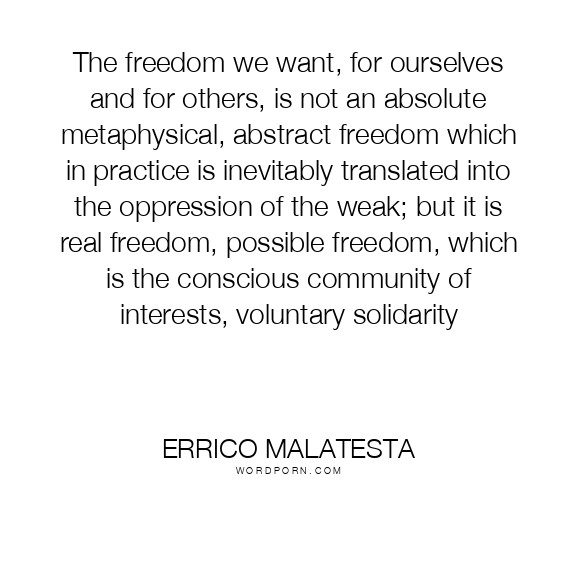 The freedom we want, for ourselves and for others, is not an absolute metaphysical, abstract freedom which in practice is inevitably translated into the oppression of the weak; but it is real freedom, possible freedom, which is the conscious community of interests, voluntary solidarity