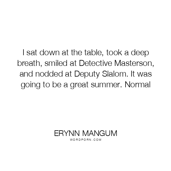 Copy Image I sat down at the table, took a deep breath, smiled at Detective Masterson, and nodded at Deputy Slalom. It was going to be a great summer. Normal Moms Typewriter A A SAVE THIS IMAGE