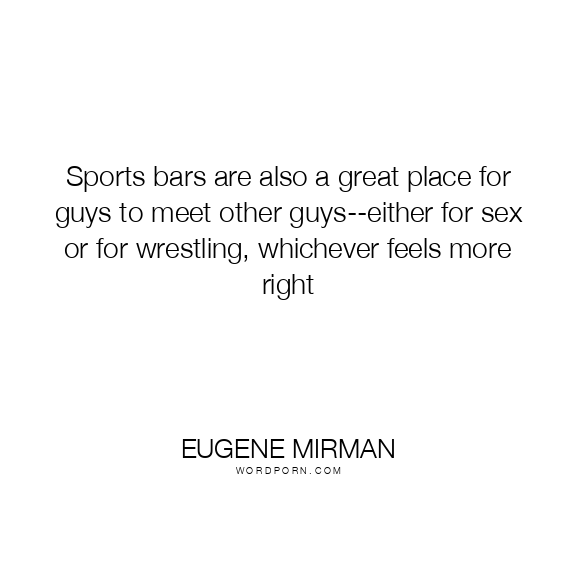 Sports bars are also a great place for guys to meet other guys--either for sex or for wrestling, whichever feels more right
