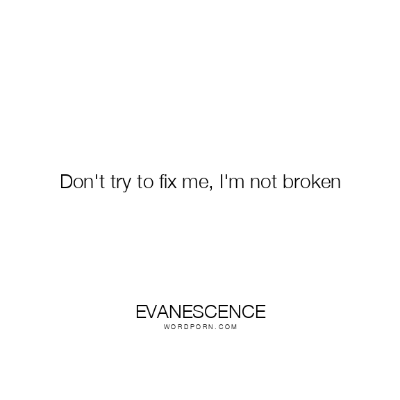 Don't try to fix me, I'm not broken