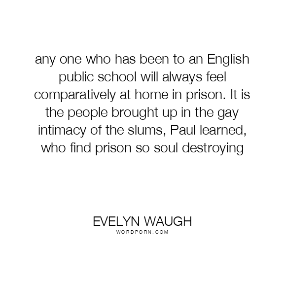 any one who has been to an English public school will always feel comparatively at home in prison. It is the people brought up in the gay intimacy of the slums, Paul learned, who find prison so soul destroying