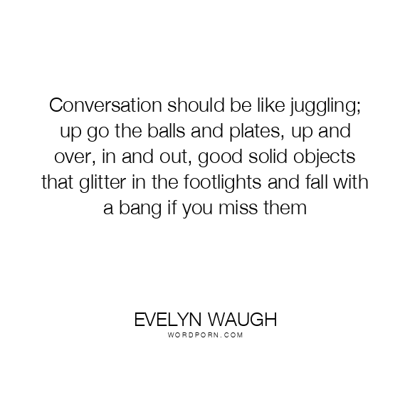Conversation should be like juggling; up go the balls and plates, up and over, in and out, good solid objects that glitter in the footlights and fall with a bang if you miss them