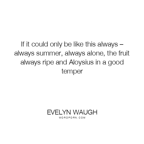 If it could only be like this always – always summer, always alone, the fruit always ripe and Aloysius in a good temper