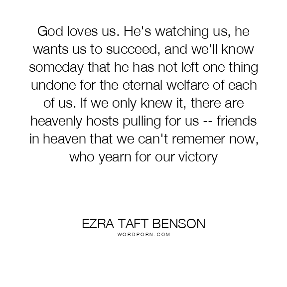 God loves us. He's watching us, he wants us to succeed, and we'll know someday that he has not left one thing undone for the eternal welfare of each of us. If we only knew it, there are heavenly hosts pulling for us -- friends in heaven that we can't rememer now, who yearn for our victory
