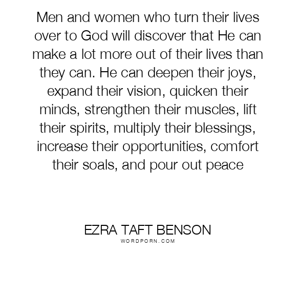 Men and women who turn their lives over to God will discover that He can make a lot more out of their lives than they can. He can deepen their joys, expand their vision, quicken their minds, strengthen their muscles, lift their spirits, multiply their blessings, increase their opportunities, comfort their soals, and pour out peace