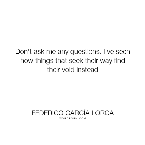 Don't ask me any questions. I've seen how things that seek their way find their void instead