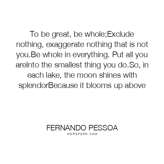 To be great, be whole;Exclude nothing, exaggerate nothing that is not you.Be whole in everything. Put all you areInto the smallest thing you do.So, in each lake, the moon shines with splendorBecause it blooms up above