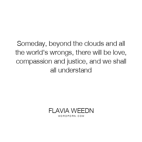 Someday, beyond the clouds and all the world's wrongs, there will be love, compassion and justice, and we shall all understand