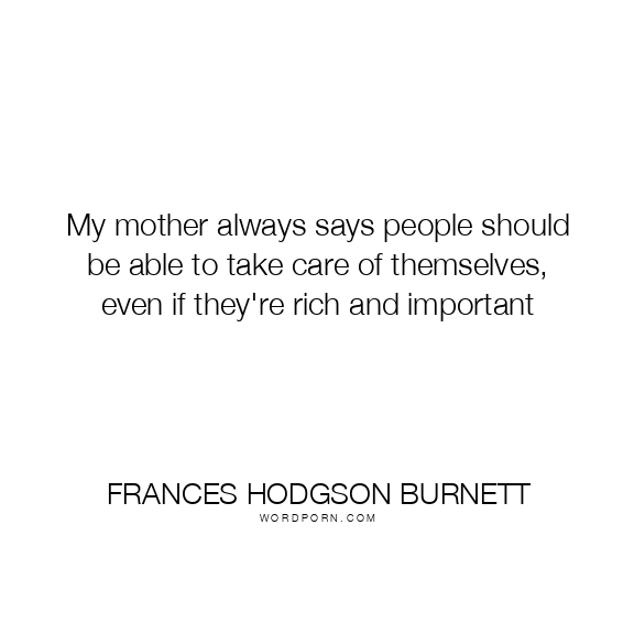 My mother always says people should be able to take care of themselves, even if they're rich and important
