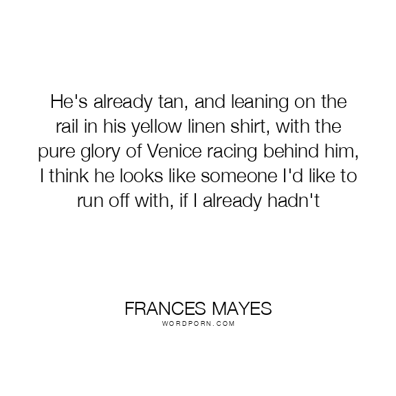He's already tan, and leaning on the rail in his yellow linen shirt, with the pure glory of Venice racing behind him, I think he looks like someone I'd like to run off with, if I already hadn't