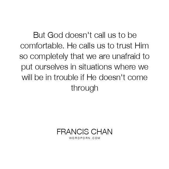 But God doesn't call us to be comfortable. He calls us to trust Him so completely that we are unafraid to put ourselves in situations where we will be in trouble if He doesn't come through