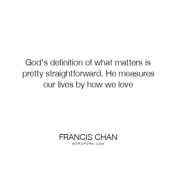 God's definition of what matters is pretty straightforward. He measures our lives by how we love