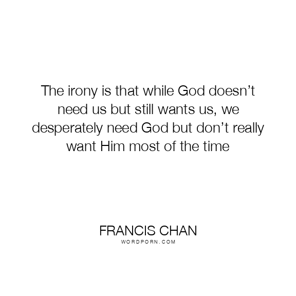 The irony is that while God doesn’t need us but still wants us, we desperately need God but don’t really want Him most of the time