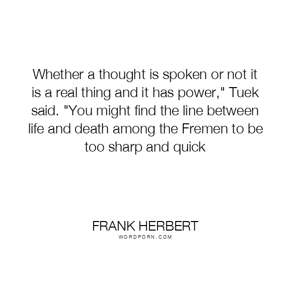 Whether a thought is spoken or not it is a real thing and it has power," Tuek said. "You might find the line between life and death among the Fremen to be too sharp and quick