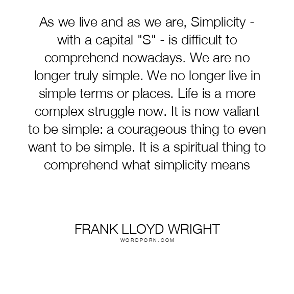 Frank Lloyd Wright quote. As we live and as we are, Simplicity - with a capital