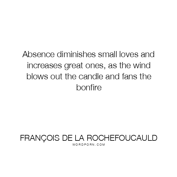 Absence diminishes small loves and increases great ones, as the wind blows out the candle and fans the bonfire
