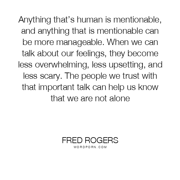 Anything that’s human is mentionable, and anything that is mentionable can be more manageable. When we can talk about our feelings, they become less overwhelming, less upsetting, and less scary. The people we trust with that important talk can help us know that we are not alone
