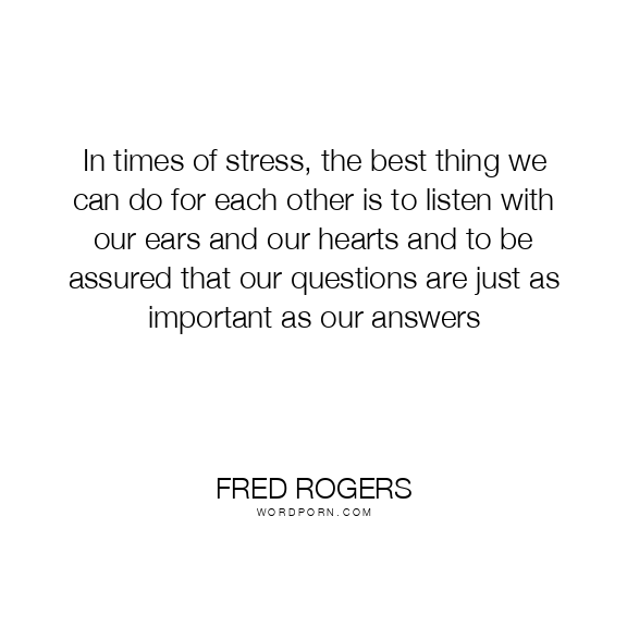 In times of stress, the best thing we can do for each other is to listen with our ears and our hearts and to be assured that our questions are just as important as our answers