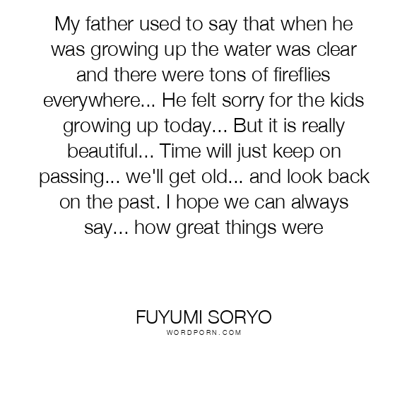My father used to say that when he was growing up the water was clear and there were tons of fireflies everywhere... He felt sorry for the kids growing up today... But it is really beautiful... Time will just keep on passing... we'll get old... and look back on the past. I hope we can always say... how great things were