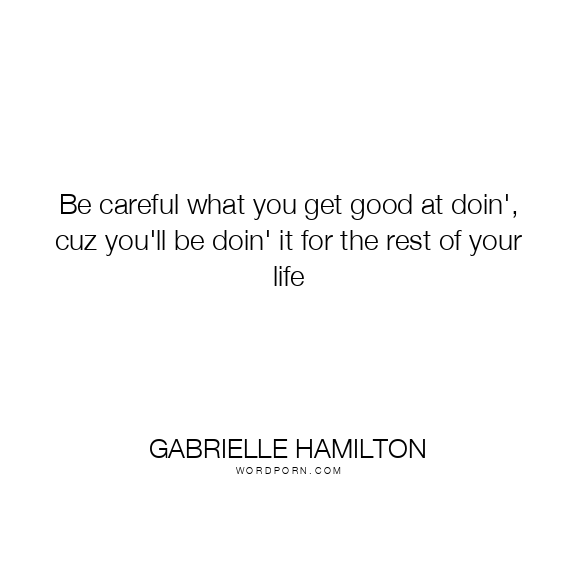 Be careful what you get good at doin', cuz you'll be doin' it for the rest of your life