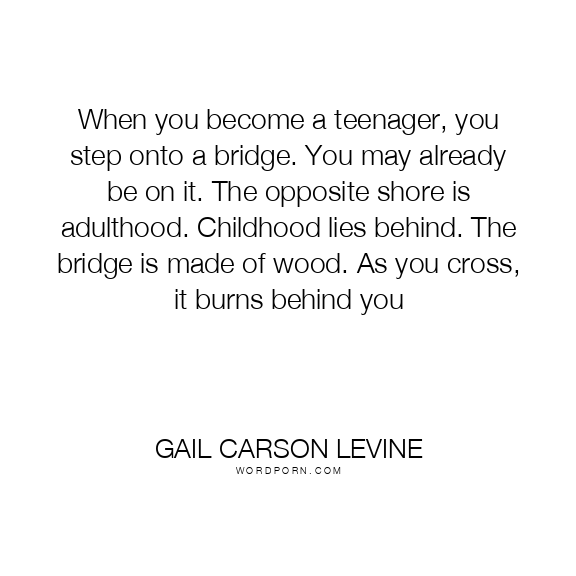 When you become a teenager, you step onto a bridge. You may already be on it. The opposite shore is adulthood. Childhood lies behind. The bridge is made of wood. As you cross, it burns behind you
