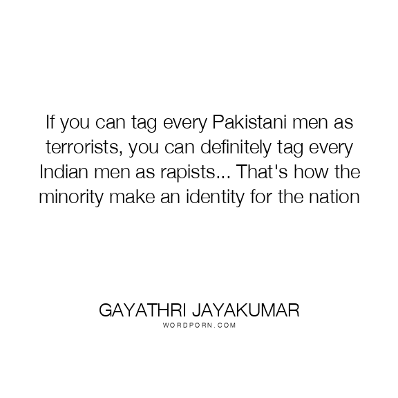 If you can tag every Pakistani men as terrorists, you can definitely tag every Indian men as rapists... That's how the minority make an identity for the nation
