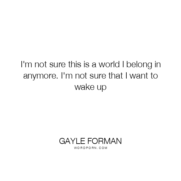I'm not sure this is a world I belong in anymore. I'm not sure that I want to wake up