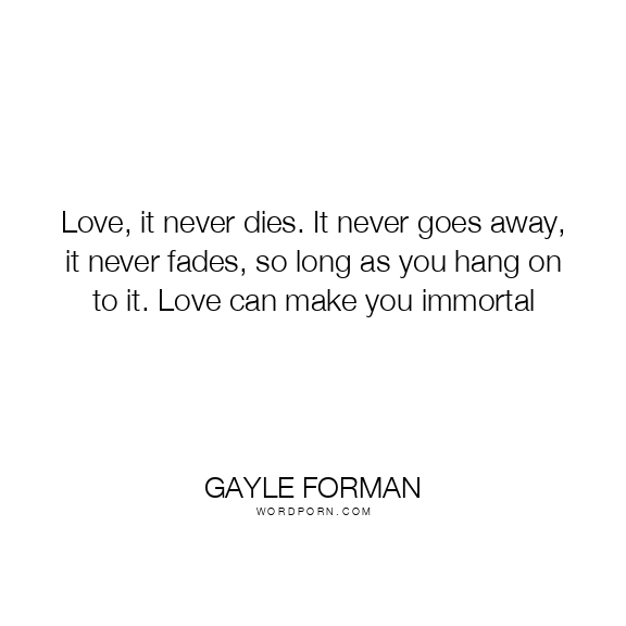 Love, it never dies. It never goes away, it never fades, so long as you hang on to it. Love can make you immortal