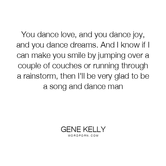 You dance love, and you dance joy, and you dance dreams. And I know if I can make you smile by jumping over a couple of couches or running through a rainstorm, then I'll be very glad to be a song and dance man