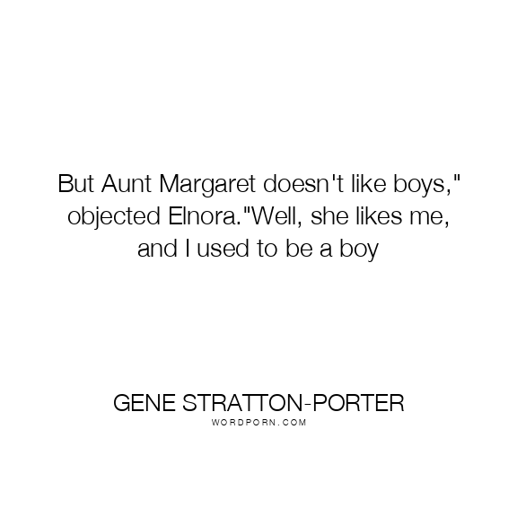 But Aunt Margaret doesn't like boys," objected Elnora."Well, she likes me, and I used to be a boy