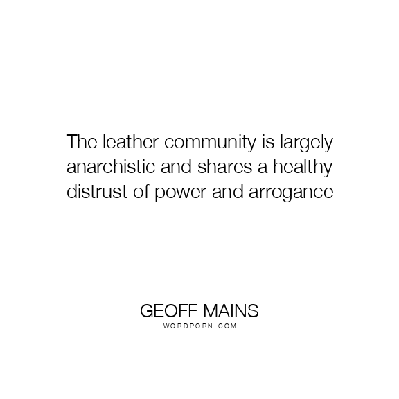 The leather community is largely anarchistic and shares a healthy distrust of power and arrogance