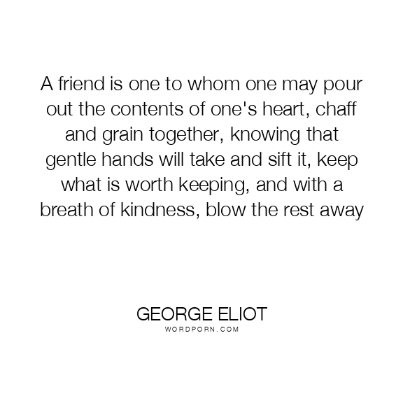 A friend is one to whom one may pour out the contents of one's heart, chaff and grain together, knowing that gentle hands will take and sift it, keep what is worth keeping, and with a breath of kindness, blow the rest away