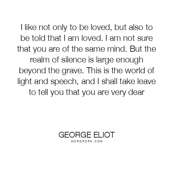 I like not only to be loved, but also to be told that I am loved. I am not sure that you are of the same mind. But the realm of silence is large enough beyond the grave. This is the world of light and speech, and I shall take leave to tell you that you are very dear