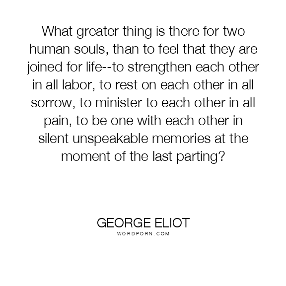What greater thing is there for two human souls, than to feel that they are joined for life--to strengthen each other in all labor, to rest on each other in all sorrow, to minister to each other in all pain, to be one with each other in silent unspeakable memories at the moment of the last parting?