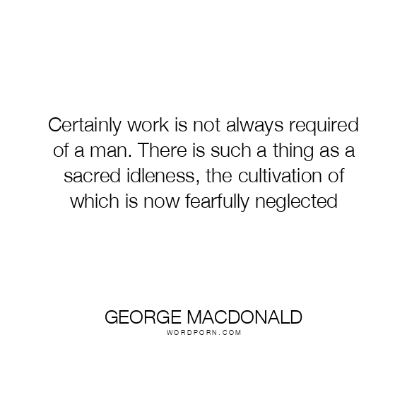 Certainly work is not always required of a man. There is such a thing as a sacred idleness, the cultivation of which is now fearfully neglected