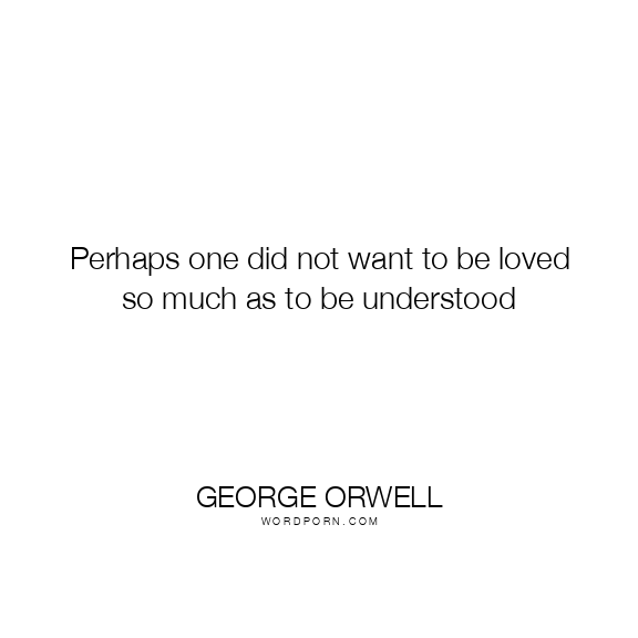 Perhaps one did not want to be loved so much as to be understood