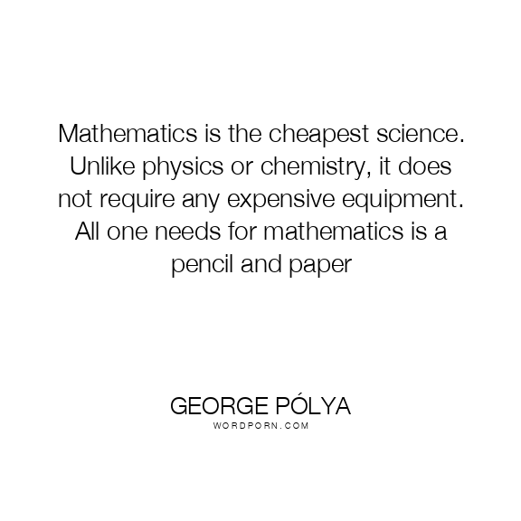 Mathematics is the cheapest science. Unlike physics or chemistry, it does not require any expensive equipment. All one needs for mathematics is a pencil and paper