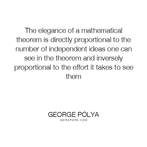 The elegance of a mathematical theorem is directly proportional to the number of independent ideas one can see in the theorem and inversely proportional to the effort it takes to see them