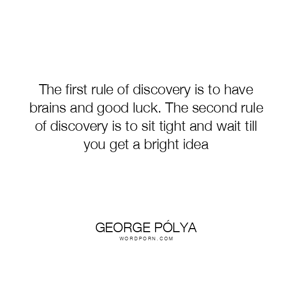 The first rule of discovery is to have brains and good luck. The second rule of discovery is to sit tight and wait till you get a bright idea