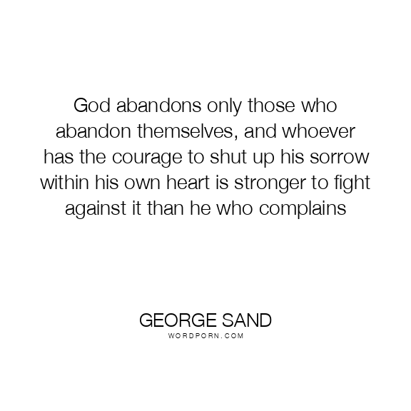 God abandons only those who abandon themselves, and whoever has the courage to shut up his sorrow within his own heart is stronger to fight against it than he who complains