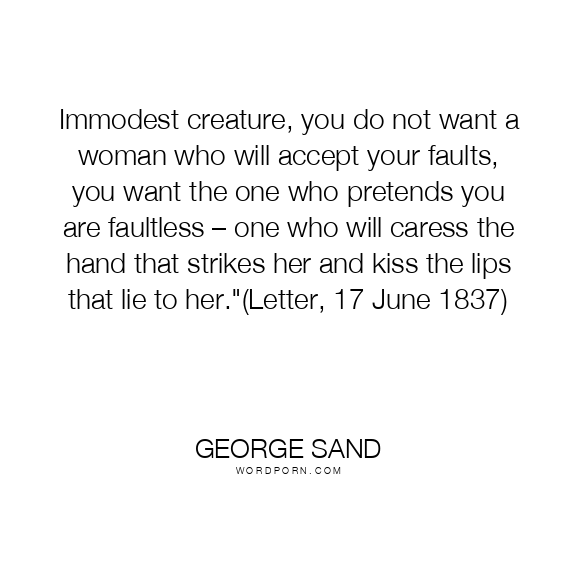 Immodest creature, you do not want a woman who will accept your faults, you want the one who pretends you are faultless – one who will caress the hand that strikes her and kiss the lips that lie to her."(Letter, 17 June 1837)
