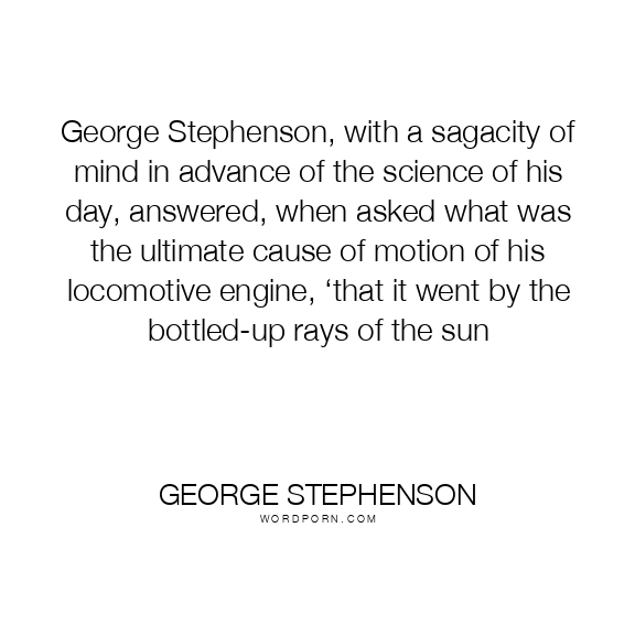 George Stephenson, with a sagacity of mind in advance of the science of his day, answered, when asked what was the ultimate cause of motion of his locomotive engine, ‘that it went by the bottled-up rays of the sun