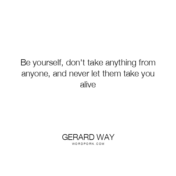 Be yourself, don't take anything from anyone, and never let them take you alive