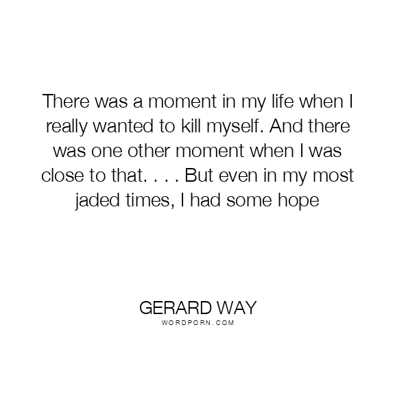 There was a moment in my life when I really wanted to kill myself. And there was one other moment when I was close to that. . . . But even in my most jaded times, I had some hope