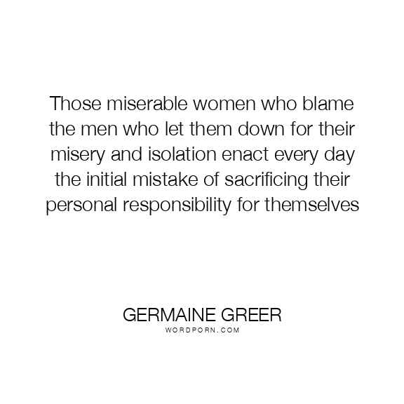 Those miserable women who blame the men who let them down for their misery and isolation enact every day the initial mistake of sacrificing their personal responsibility for themselves